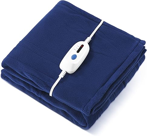 Details: Electric Heating Blanket, 4 Heating Levels & 3 Hour Auto-Off, Soft & Skin-Friendly Fleece Heating Blanket, 50″ x 60″ Size, Fast Heat Cape, Overheat Protection, Dark Blue