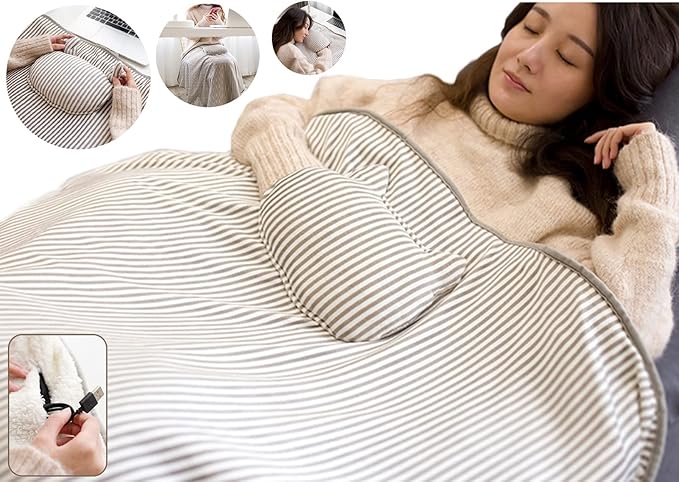 Details: GFERTRE USB Heated Shawl Electric Heated Blanket Portable Plush Flannel Blanket, with Hand Pocket, Lap Knees Shoulders Blanket Pad/ Office Pillow for Car Office Home Camping (28 * 45”)