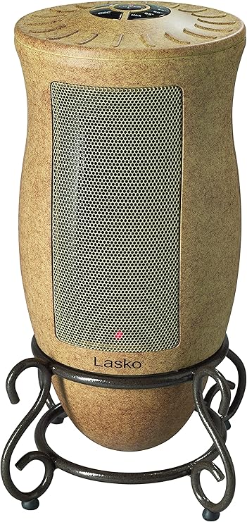 Chilly room? Try the Lasko Designer Series Oscillating Ceramic Heater. This uniquely designed heater provides warmth and charm to your living space, and blends beautifully into your existing decor. Features an adjustable timer, optional widespread oscillation, 2 heat settings, and thermostat-controlled mode for ultimate customization options for making your room cozy. Comes fully assembled and has a self-regulating ceramic element and automatic overheat protection for safety. The decorative metal scroll work on the base is a classic touch. This versatile space heater is an essential for almost any room in the home when days turn chilly.